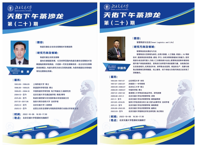 本期下午茶邀请到了轨道交通控制与安全国家重点实验室副主任、交通运输学院秦勇教授、国家经济安全研究院执行院长、经济管理学院华国伟教授共同进行了交流分享。詹天佑学院党组织副书记、副院长马泰、2022级辅导员孔繁婷及詹天佑学院40余名学生参加了本次活动。