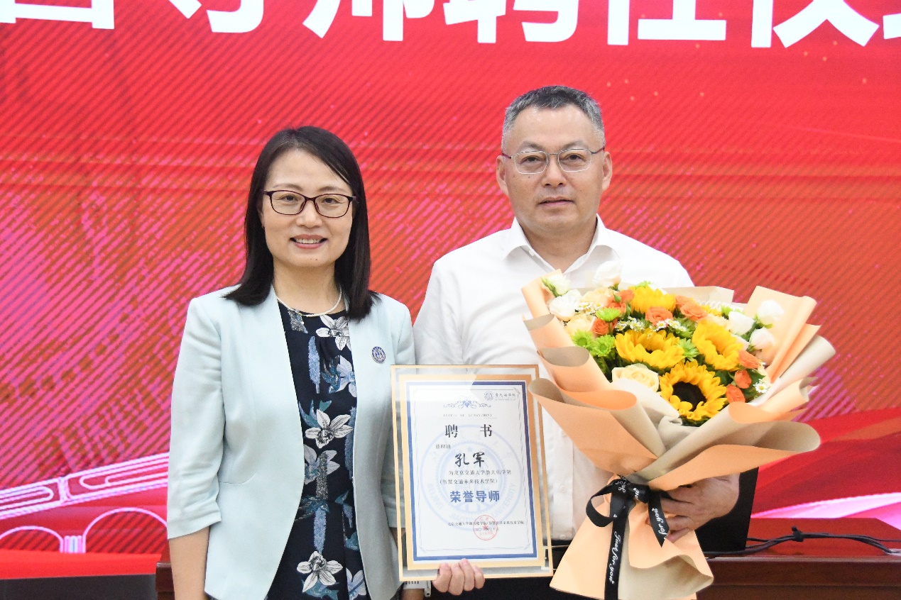 史红梅向孔军详细介绍了詹天佑学院的发展历程、阶段性成果与2024级新生等情况。双方就未来人才培养、科研合作、实习实践等方面工作进行了交流。学院聘请孔军为詹天佑学院荣誉导师,并为他颁发聘书。