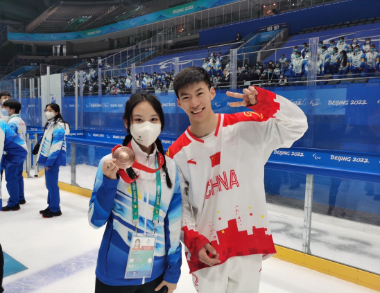 支部团员与冬残奥会铜牌获得者-中国残奥冰球运动员合影