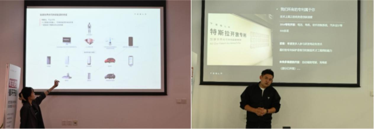 在讲解员的指引下,同学们全面了解特斯拉的商业和技术规划:从初期以低产量、高价格的跑车吸引投资用于研发创新;而后为满足市场需求降低成本,扩充汽车产品线;同时,全面推进技术革新,开发可持续能源产品和自动驾驶技术等,大力“推动世界向可持续能源的转变”。