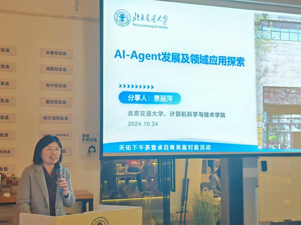 景丽萍教授以AI-Agent发展及领域应用探索为切入点,分析了AI的发展历史,阐述了什么是真正的人工智能。此外,景丽萍教授通过PPT展示了科学家是从大脑认知模型获得灵感发展人工智能历程,展现了部分人工智能与机器学习类型的实际应用,同时也激发了学生们对科技创新的热情。