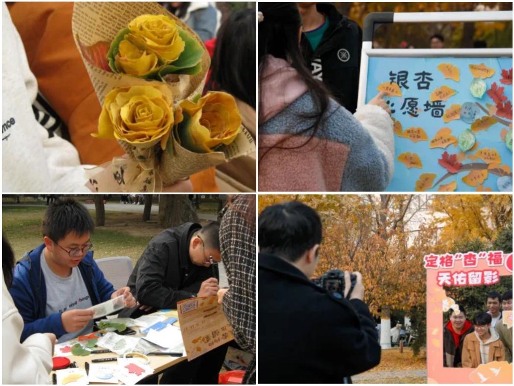 11月7日,银杏游园会于芳华园举办,众多师生踊跃参与,通过转发活动推文集赞领取银杏主题明信片,开启游园探索。活动现场,同学们在心愿墙上用银杏便利贴写下对未来的期望和憧憬;利用银杏制作个性书签和画作,创作出属于独具匠心的作品;打卡芳华园留影点,用镜头记录秋日美好。活动以抽奖作为最终环节,将氛围推向高潮。