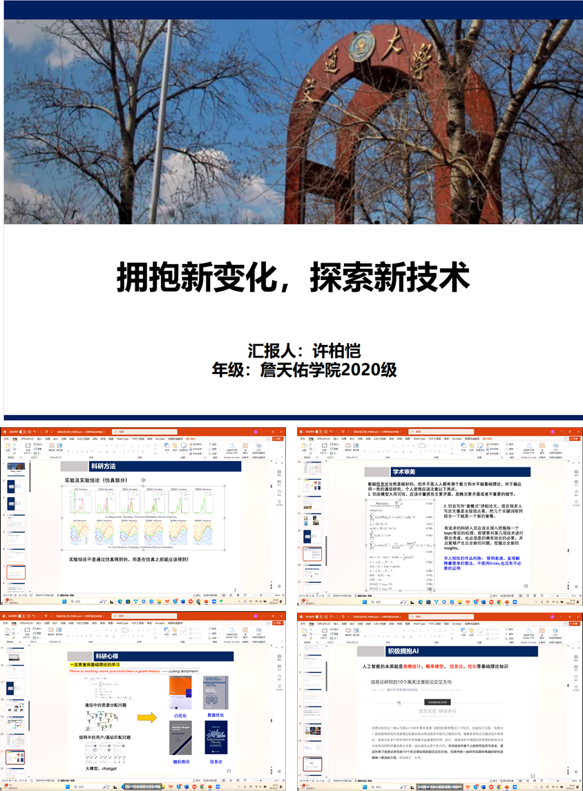 2月7日,信息与通信工程专业博士生许柏恺以“拥抱新变化,探索新技术”为主题,结合自身丰富的科研经历,从科研方法、学术品位与学习规范等维度,深入浅出地分享了大学生从事学术科研的具体步骤和心得体会,鼓励同学们要关注工业领域实际需求,拥抱AI工具,积极拥抱新技术带来的变革。