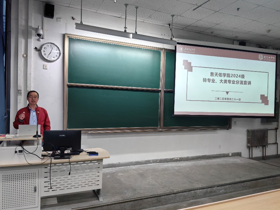 为做好2024级本科生转专业和专业大类分流工作,詹天佑学院于4月21日召开2024级学生动态分流宣讲会。会议由詹天佑学院副院长李清勇代表学院进行线下及线上宣讲,2024级辅导员、教学管理办公室工作人员、2024级詹天佑学院学生及家长参加。