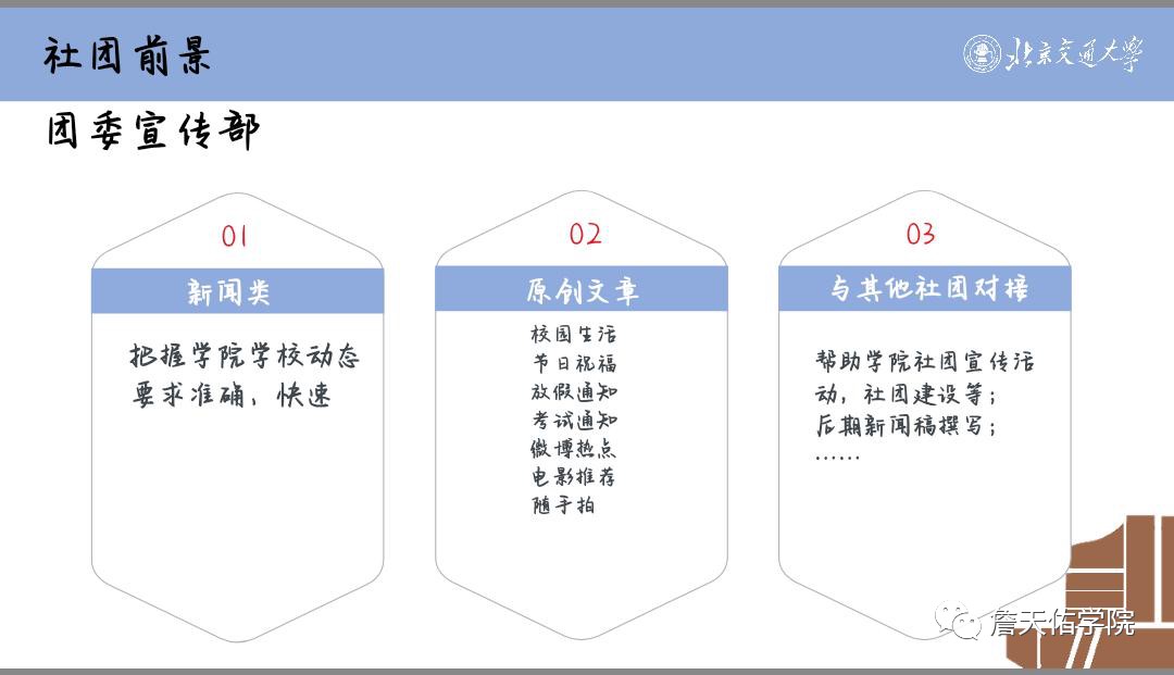 由于学院成立不久,目前只在微信公众号以及企业微信进行宣传,但是后续在b站,微博等一系列平扩大宣传,还需要天佑学子们的共同努力。在团委工作室,成员们能够接触新媒体行业,学习新的技能,还可以参与迎新,答辩等活动的策划、管理,在自己感兴趣的领域独领风骚。